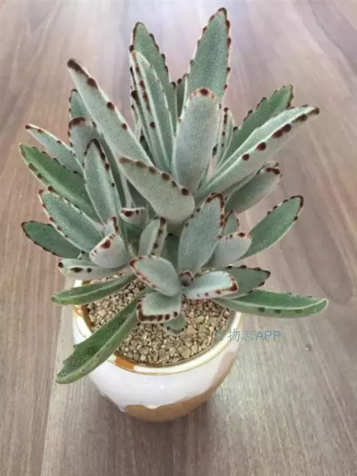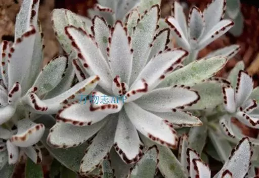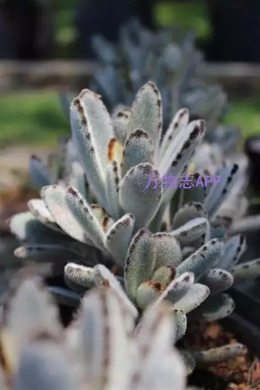 褐斑伽蓝是景天科、伽蓝菜属多年生肉质草本植物或小灌木。全株灰白色,密布白色茸毛。叶片长卵形,…