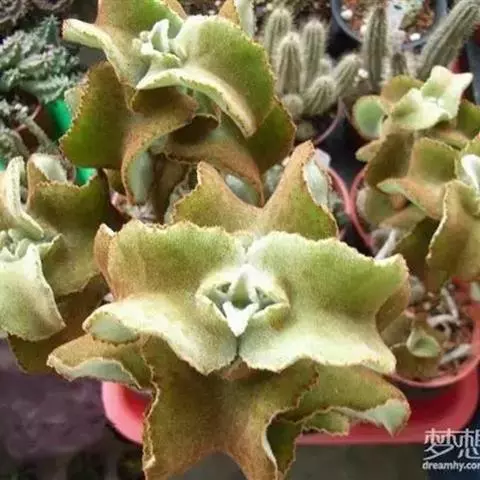 仙女之舞是景天科、伽蓝菜属植物。常绿肉质灌木,株高可达2-3米。幼株茎上有毛。叶有柄;单叶对生,…