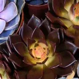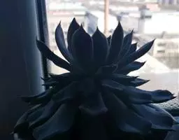 形态特征:黑王子属多年生肉质草本植物。植株具短茎, 肉质叶排列成标准的莲座状,生长旺盛时其叶盘直径可达20厘米,叶片匙形,稍厚,顶端有小尖,叶色黑紫。聚伞花序,小花红色或紫红色。