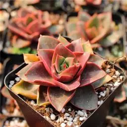 大和锦是景天科拟石莲花属的多肉植物。肉质叶排成紧密的莲座状,广卵形至散三角卵形,背面突起呈龙骨状,…
