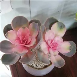 其中玉蝶是景天科拟石莲花属的代表。肉质厚实叶片形状恰如宝石一般,多枝叶片重叠簇生在一起,莲座状叶盘酷似一朵盛开的莲花而得名,被誉为“永不凋谢的花朵”,正所谓“西方莲自土中来”。形态独特,养护简单,很适合家庭栽培。