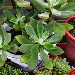 除石莲花属外,景天科的莲花掌属、风车草属、仙女杯属、瓦松属、长生草属中也有不少品种的肉质叶是呈莲座状排列的,形态与石莲花属植物很相似,但花形却有很大的差别。