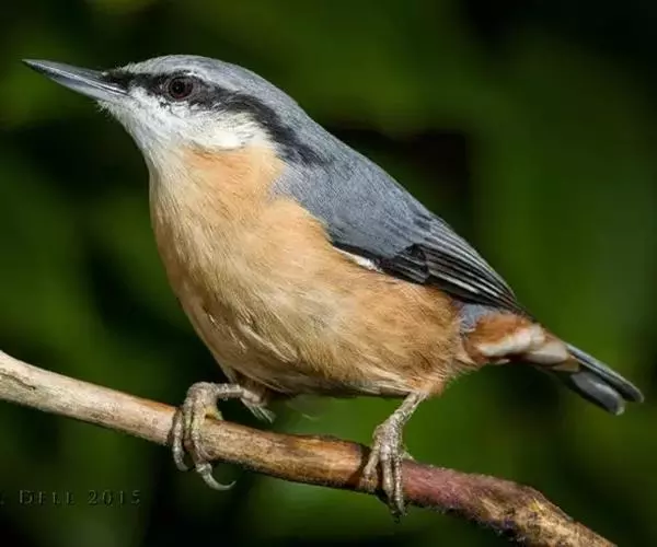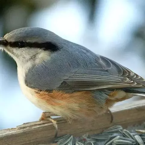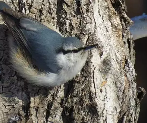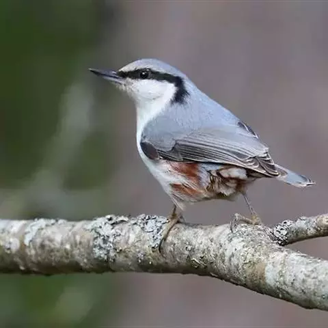 普通鳾(学名:Sitta europaea):是小型鸣禽,体长约13厘米,体重19-24克,体型似山雀,嘴细长而直,约1.5厘米。身体的背面为石板蓝色,具有一条明显的黑色贯眼纹沿头侧伸向颈侧,翅的飞羽为黑色。中央一对尾羽为蓝灰色,其余为黑色。颏喉、颈侧和胸部为白色,腹部两侧栗色,下腹土黄褐色。尖长的鸟喙蓝灰色。眼睛黑色。双腿橙棕色,长爪尖黑色。雌雄同色,雄性个体略大。