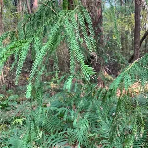 银杉:树皮暗灰色。大枝平展,小枝节间的上端较粗,或少数侧生小成距状。叶枕近条形,稍隆起,…