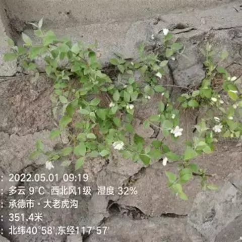 小花溲疏灌木,高约2米;老枝灰褐色或灰色,表皮片状脱落。叶纸质,卵形、椭圆状卵形或卵状披针形。…