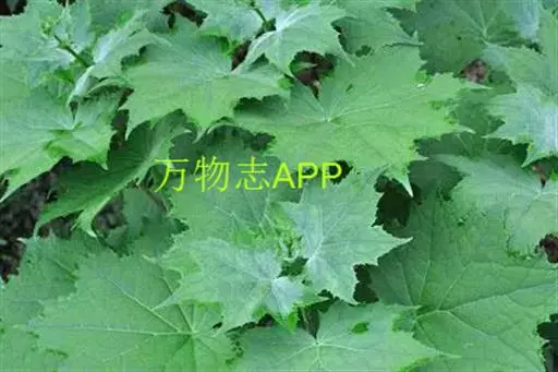 叶生于茎下部的最大,圆心形,长和宽均10-20厘米,掌状7-10裂,裂片具粗齿,基部近心形,两面被糙伏毛,生于茎上部的叶渐较小,长、宽均3-7厘米,最上部的叶卵形或披针形,先端渐尖;叶柄生于茎最下部的最长,长达25厘米,生于茎上部的渐短以至于无柄。