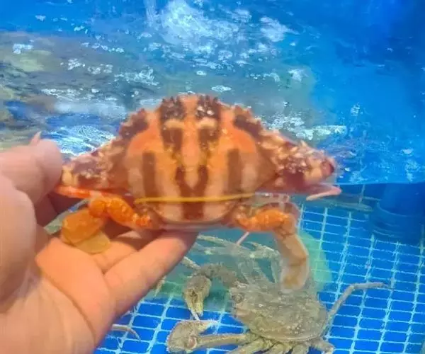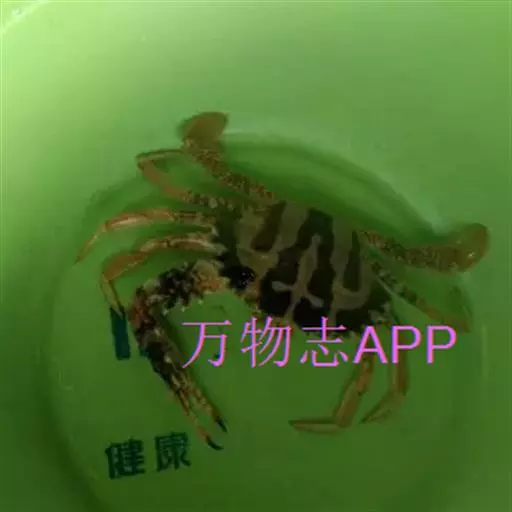 体色: 头胸甲红棕色,具黄色条纹,而中部前方则有一黄色十字交叉纹。螯脚红色并布有黄色斑纹,二指前端为深啡色。