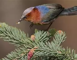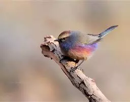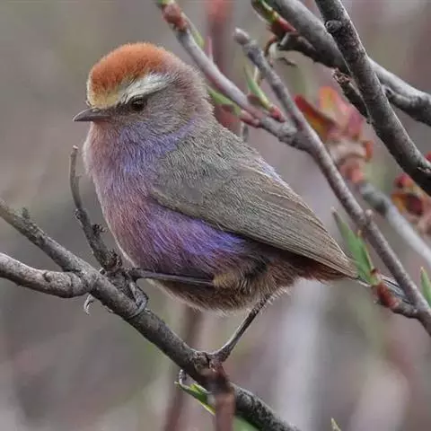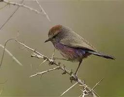 花彩雀莺:体长9-12厘米,是一种毛茸茸偏紫色的雀莺。顶冠棕色,眉纹白。尾长,羽毛松软。…