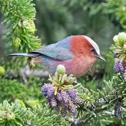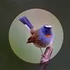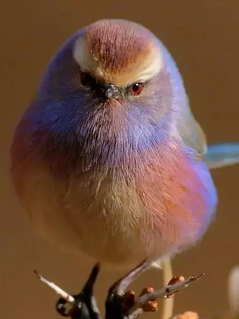 凤头雀莺:小型鸟类。体长9-10厘米,雄鸟呈毛茸茸的紫色和绛紫色,顶冠淡紫灰色,额及凤头白色,尾全蓝。…