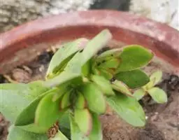 酥皮鸭是一种植株为直立的肉质灌木,能够长高。叶盘莲座状,叶片呈卵型,叶片光滑绿色,叶片顶端和叶缘发红,有叶尖,叶背有一条棱,会发红。强光下叶片的顶端和边缘也会发红。