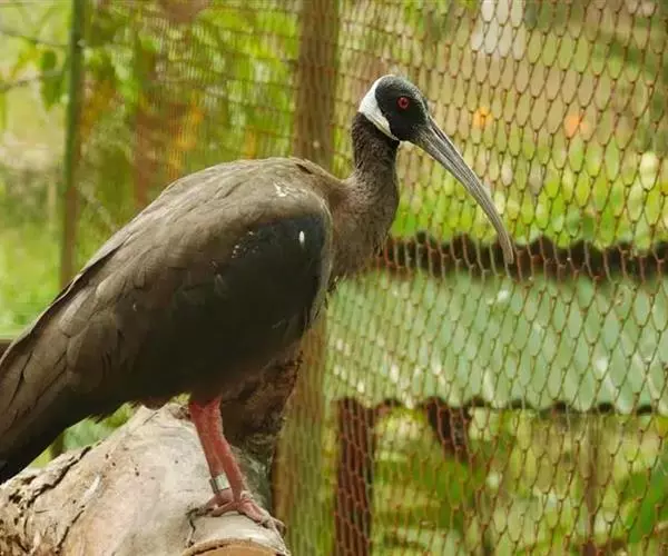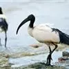 圣鹮头、颈黑色,身体白色,初级和次级飞羽尖端黑色。喙长且厚、黑色下弯,跗蹠与趾黑色。…