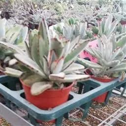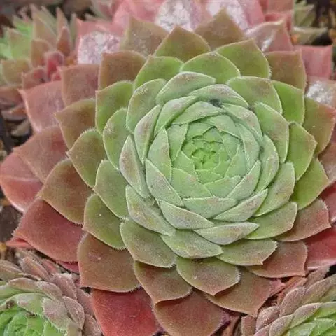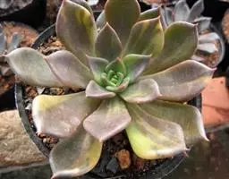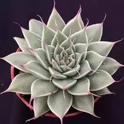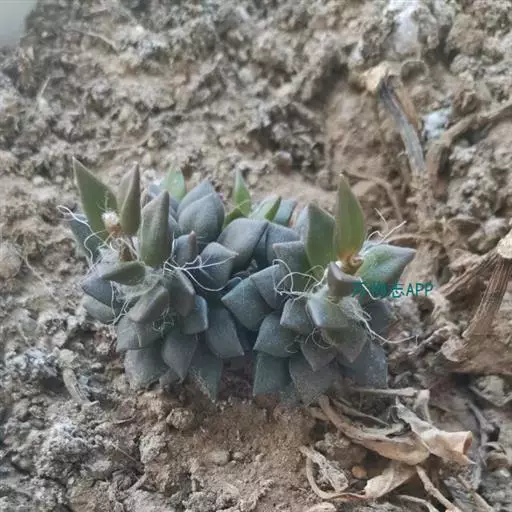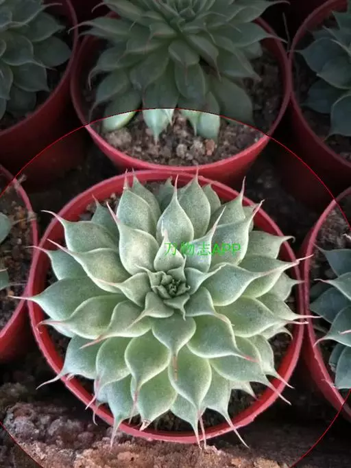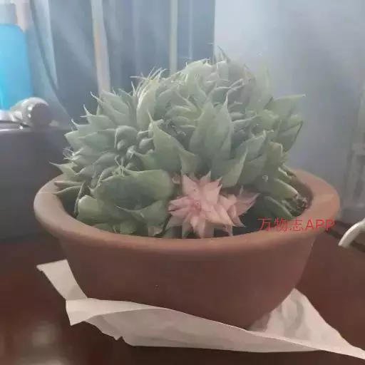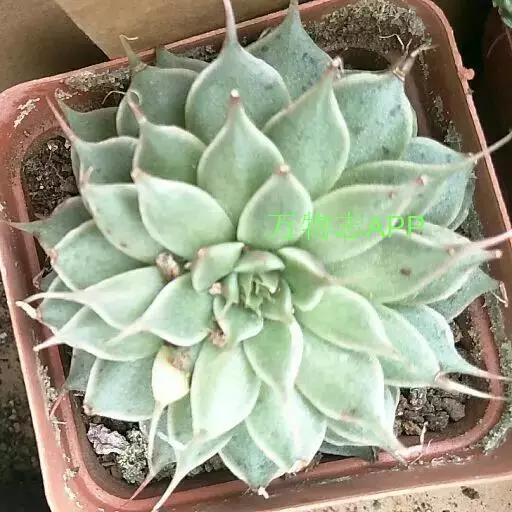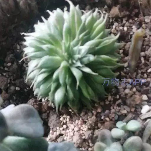 多年生肉质植物,莲座状叶盘较大,株幅可达10厘米。老株易丛生。叶长卵形 银星 ,较厚,叶面青绿色略带红褐色,有光泽,叶尖非常特殊,有1厘米长,褐色。