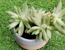 银星为为景天科、风车草属肉质植物,可盆栽点缀几案、书桌,有一定观赏价值。是一种杂交的多肉植物,亲本的原生地都为于南非。银星叶片光滑,叶色灰绿,因叶肉组织含气泡的关系,容易反射光线产生银色闪亮的特殊质感。