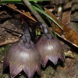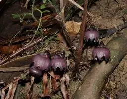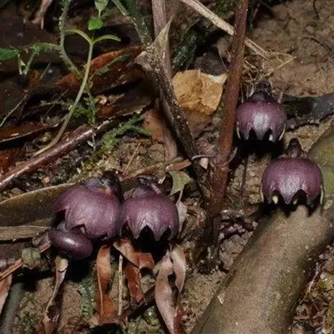 总花梗长0.5~2厘米;苞片3~4枚,其中2枚位于花的基部,宽卵形,长7~10毫米,宽约9毫米,淡绿色,有时有紫色细点;花被钟状,长12~18毫米,直径10~14毫米,外面带紫色或暗紫色,内面下部淡紫色或深紫色,上部6~8裂;花被筒长10~12毫米.裂片近三角形,向宽3.5~4毫米,先端钝,边缘和内侧的上部淡绿色,内面具条特别肥厚的肉质脊状隆起,中间的2条细而长,两侧的2条粗而短,中部高达1.5毫米,紫红色;雄蕊6~8枚,生于花被筒近基部,低于柱头;花丝短,花药椭圆形,长约2毫米;雌蕊高约8毫米,子房几不膨大;花柱无关节;柱头盾状膨大,圆形,直径10~13毫米,紫红色,上面具3~4深裂,裂缝两边多少向上凸出,中心部分微凸,裂片先端微凹,边缘常向上反卷。