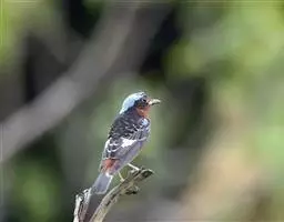 点胸鸦雀是莺科、鸦雀属小型鸟类,体长18-21厘米。头顶至枕橙棕色,嘴橙黄色、短而粗厚,脸皮黄色,…