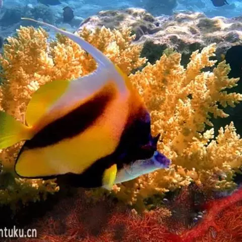 朴蝴蝶鱼 分布广,数量亦较多,为我国沿海产蝴蝶鱼类中最常见种,分布于北太平洋西部,我国产于南海和东海,栖息于近海珊瑚礁或岩石间,小型鱼,体长一般50~90毫米。