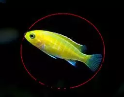 口小,吻突出。背鳍有强大鳍棘11根,以第四鳍棘为最长,臀鳍有强棘3根,背鳍鳍条部前下方有一镶白边圆形大蓝斑,体侧有4条镶蓝边黄色横带。