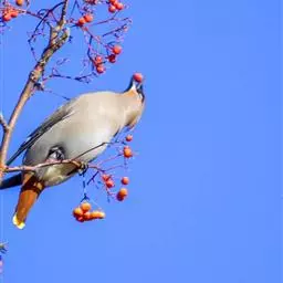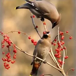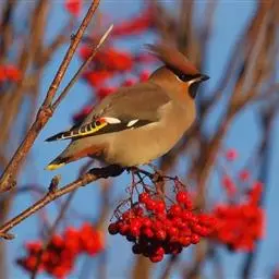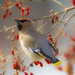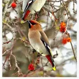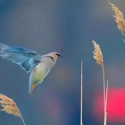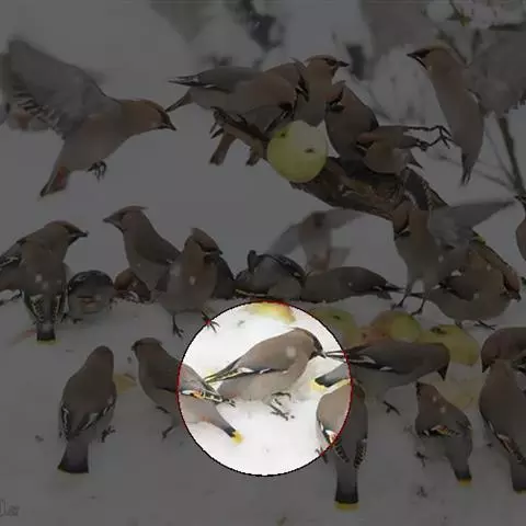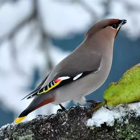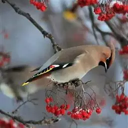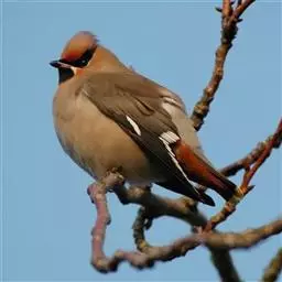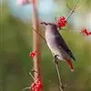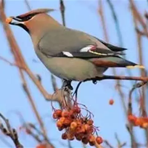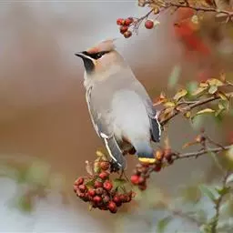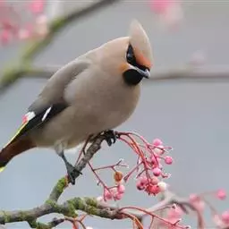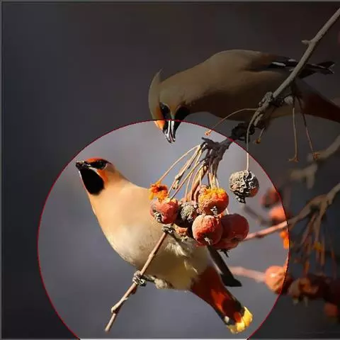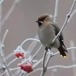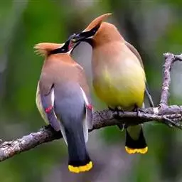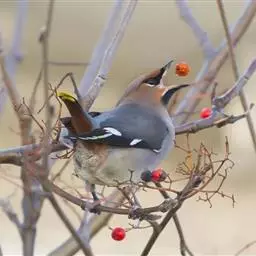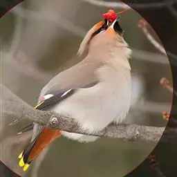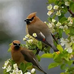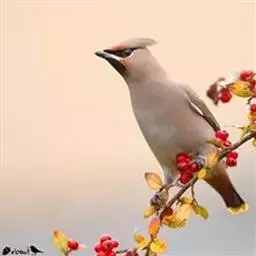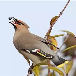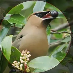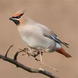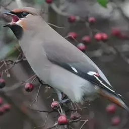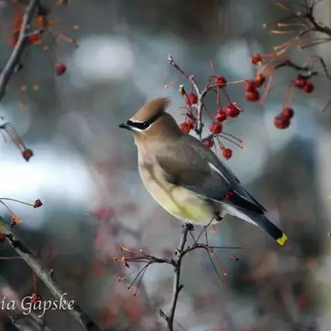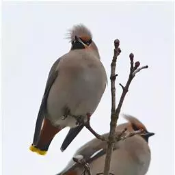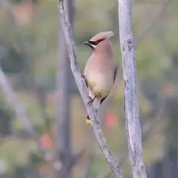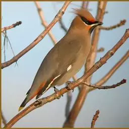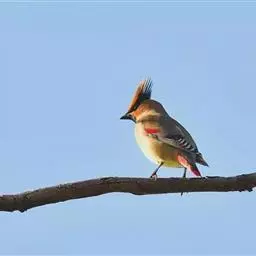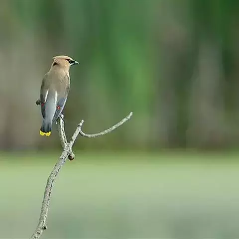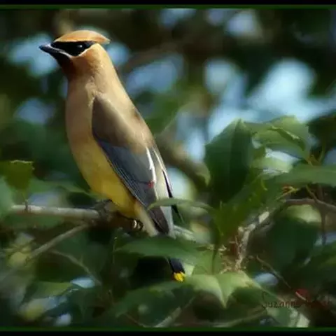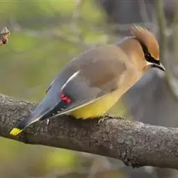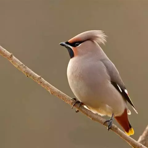 雪松太平鸟体形(学名Bombycilla cedrorum:)中等大小,体长约在19厘米左右。该物种雄雌同形同色,太平鸟成鸟额部及面部前端为栗色,向头后部颜色逐渐变浅;额基部、眼先、眼周及眼后部有黑色纹带,颌部亦有黑色区域;枕部黑色,与贯眼的黑色区域相链接,形成环绕头部的黑环;头顶具细长的簇状羽冠,这条羽冠常常覆盖在枕部的黑色羽区上,让人无法看到环绕头部的黑环;体羽松软,头部有一簇柔软的冠羽,嘴短,略呈钩状。喜群居,无领域性,多树栖,以松籽、浆果、昆虫为食。在美洲广泛分布。雪松太平鸟亚成鸟眼后和头枕部没有黑羽,前胸及腹部有明显的褐色带状纹。