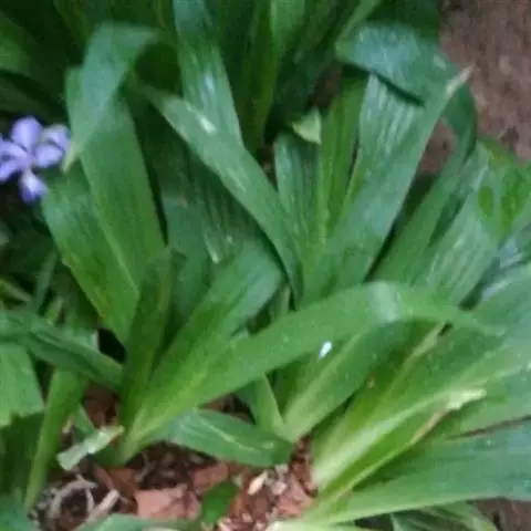 多年生草本,植株基部常生有许多膜质的鞘状叶。根状茎斜伸,上部包以棕褐色的老叶残留纤维;须根黄色,有横纹。叶基生,条形,长30-50厘米,宽2-4毫米,顶端长渐尖,基部鞘状,叶鞘内有银白色的金属光泽,表面绿色,靠近基部略带红紫色,有1-3条纵脉。