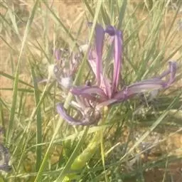 花茎中空,高40-60厘米,中部或中上部生有1-2枚茎生叶;苞片2-3枚,表面带红褐色,里面带苍白色,披针形,长6-7厘米,宽7-9毫米,顶端渐尖,内包含有1-2朵花;花深蓝紫色,直径5.5-6厘米;花被管甚短。