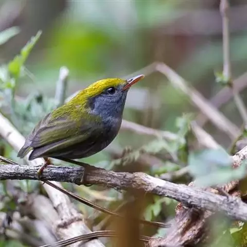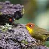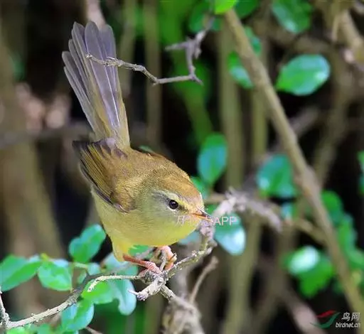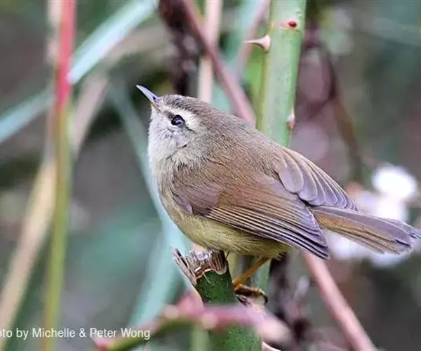 黄腹树莺(学名:Horornis acanthizoides):小型鸟类,体长10-11厘米。雌雄两性羽色相似。上体概暗橄榄褐色;颏、喉沾棕,胸和两胁呈灰橄榄褐色,下体余部淡黄色。虹膜褐色;上嘴褐色,下嘴灰黄色;脚淡棕色。虹膜褐色;上嘴褐色或棕褐色,下嘴黄褐色或肉色;脚淡棕色或肉褐色。