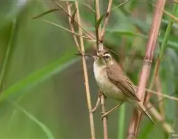 大苇莺:属小型鸟类,雌雄两性羽色相似。眉纹淡棕黄色;眼褐色;翅褐色具淡棕色的边缘;尾羽亦褐色,…