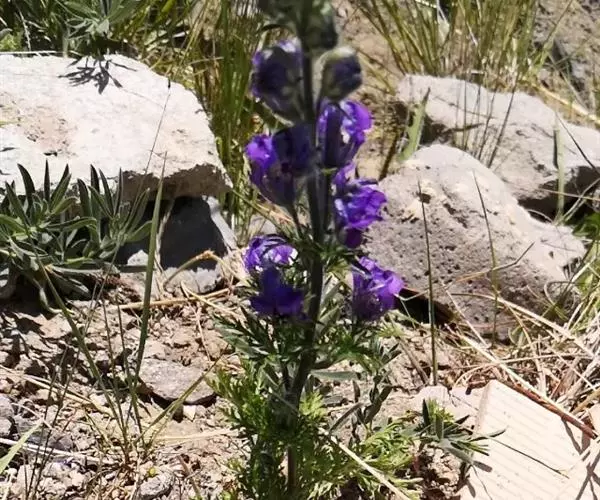 总状花序有6-16花;基部苞片似叶,其他下部苞片三裂,中部以上苞片披针形至线形;花梗长1-5(-9)厘米;小苞片生花梗上部或顶部,叶状至线形,长0.5-1.5厘米;萼片蓝紫色,少有白色,外面疏被柔毛,有较长爪,上萼片船形,高约1.8厘米,爪长约1.4厘米,侧萼片长1.5-1.8厘米,瓣片与爪近等长;花瓣的瓣片宽6-8毫米,疏被缘毛,距短,头状,疏被短毛;花丝疏被短毛;心皮6-13,子房有柔毛。蓇葖长0.8-1.2厘米;种子倒卵球形,长约1.5毫米,密生横狭翅。6-8月开花。 [1-2]