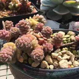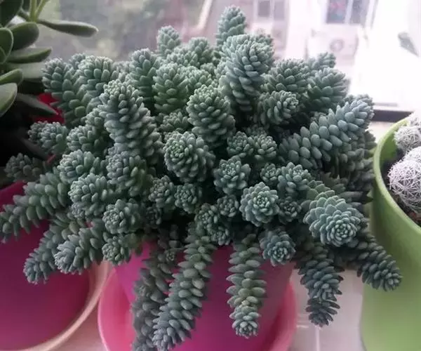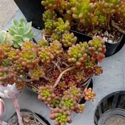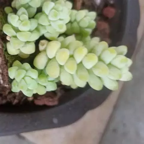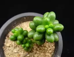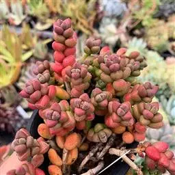 玉米石是景天科、景天属植物。多年生草本多浆植物。植株低矮丛生,多分枝。叶膨大成圆筒形、卵形或近小球形,…