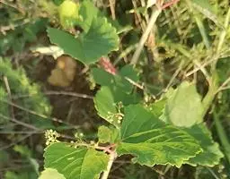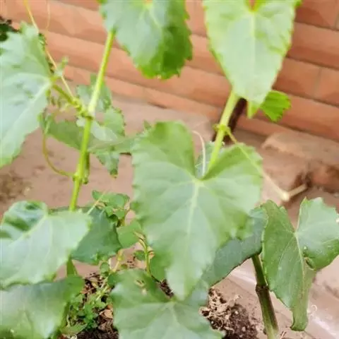 草质藤本。小枝圆柱形,有纵棱纹,常被白粉,无毛。卷须2叉分枝,相隔2节间断与叶对生。叶心状卵圆形,长5-13厘米,宽4-9厘米,顶端急尖或渐尖,基部心形,边缘每侧有9-12个细锐锯齿,上面绿色,下面浅绿色,两面均无毛;基出脉3-5,中脉有侧脉3-4对,网脉不明显;叶柄长2.5-7厘米,无毛;托叶褐色,膜质,肾形,长5-6厘米,宽2-3厘米,无毛。花序顶生或与叶对生,二级分枝4-5集生成伞形;花序梗长1-3厘米,无毛;花梗长2-4毫米,几无毛;花蕾卵圆形,高约4毫米,顶端圆钝;萼杯形,边缘全缘或呈波状,无毛;花瓣4,卵状三角形,高约3毫米,无毛;雄蕊4,花药卵椭圆形,长略甚于宽或长宽近相等;花盘明显,微4裂;子房下部与花盘合生,花柱近钻形,柱头不明显扩大。果实倒卵圆形,长0.8-1.2厘米,宽0.4-0.8厘米,有种子1颗,种子倒卵圆形,顶端圆形,基部有短喙,表面有稀疏突出棱纹,种脐在种子背面下面1/4处与种脊无异,种脊突出,腹部中棱脊突出,向上达种子上部1/3处,侧洼穴呈沟状,达种子上部。花期7-10月,果期11月至翌年5月。