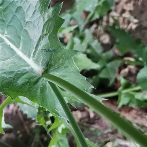 基生叶羽状深裂,全形长椭圆形或倒披针形,或大头羽状深裂,全形倒披针形,或基生叶不裂,椭圆形、椭圆状戟形、三角形、或三角状戟形或圆形,全部基生叶基部渐狭成长或短翼柄;中下部茎叶羽状深裂或大头状羽状深裂,全形椭圆形或倒披针形,长3-12厘米,宽2-7厘米,基部急狭成翼柄,翼狭窄或宽大,向柄基且逐渐加宽,柄基圆耳状抱茎,顶裂片与侧裂片等大或较大或大,宽三角形、戟状宽三角形、卵状心形,侧生裂片1-5对,椭圆形,常下弯,全部裂片顶端急尖或渐尖,下部茎叶或接花序分枝下方的叶与中下部茎叶同型并等样分裂或不分裂而披针形或线状披针形,且顶端长渐尖,下部宽大,基部半抱茎;全部叶或裂片边缘及抱茎小耳边缘有大小不等的急尖锯齿或大锯齿或上部及接花序分枝处的叶,边缘大部全缘或上半部边缘全缘,顶端急尖或渐尖,两面光滑毛,质地薄。