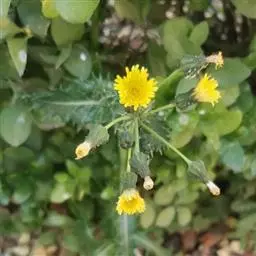 苦苣菜,学名:Sonchus oleraceus L.,是桔梗目、菊科、苦苣菜属一二年生草本植物。苦苣叶披针形。头状花序。种子短柱状,灰白色,千粒重1.6g。种子发芽力可保持10年,生产中多采用保存1-3年的种子播种。苦苣高 50 ~ 100 cm ,全草有白色乳汁。茎直立,单一或上部有分枝,中空,无毛或中上部有稀疏腺毛。叶片柔软,无毛,椭圆状披针形,长 15 ~ 20 cm 宽3 ~ 8 cm ,羽状深裂,大头羽状全裂或羽状半裂,顶裂片大或与侧裂片等大,边缘有不整齐的短刺状尖齿,下部的叶柄有翅,柄基扩大抱茎,中上部叶无柄,基部宽大呈戟状耳形。