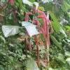 花雌雄异株,雌花序腋生,穗状,长15-30厘米,下垂,花序轴被柔毛;雌花苞片卵状菱形,散生,长约1毫米,全缘,外面具柔毛,苞腋具雌花3-7朵,簇生;雌花:萼片4(-3)枚,近卵形,长约0. 8毫米,顶端急尖,具短毛;子房近球形,密生灰黄色粗毛,花柱3枚,长6-7毫米,撕裂5-7条,红色或紫红色;雄花序未见。蒴果未见。花期2-11月。