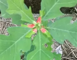 红穗铁苋菜是灌木植物,高0.5-3米;嫩枝被灰色短绒毛,毛逐渐脱落,小枝无毛。叶纸质,阔卵形或卵形,长8-20厘米,宽5-14厘米,顶端渐尖或急尖,基部阔楔形、圆钝或微心形,上面近无毛,下面沿中脉和侧脉具疏毛,边缘具粗锯齿;基出脉3-5条;叶柄长4-8厘米,具短柔毛;托叶狭三角形,长0.6-1厘米,具疏柔毛。