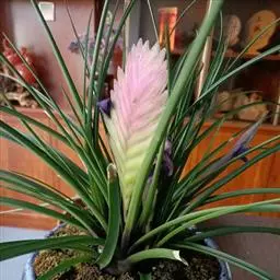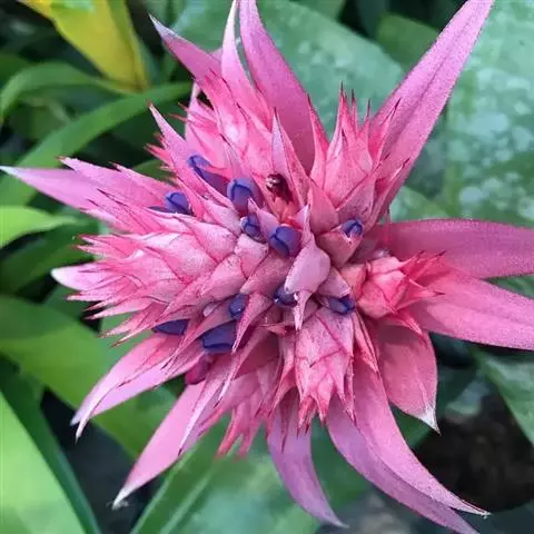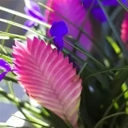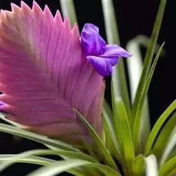 紫花凤梨,是凤梨科铁兰属的多年生草本植物。株高不及30厘米;叶片拱状线形,叶丛族生于短缩茎上,…
