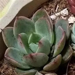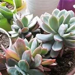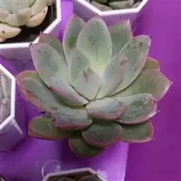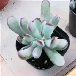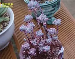 福娘为景天科银波锦属的肉质草本植物。对生的叶片呈短棒状,叶色灰绿,表覆白粉,叶缘外围镶着紫红色,…