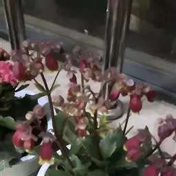茎直立,粉褐色,成年高约1m,幼年约10cm。叶圆棒状,上表面具沟槽,粉色, 棒叶落地生根 叶端锯齿上有许多已生根的小植株(由不定芽生成)花序顶生,小花红色。