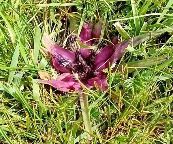 根倒圆锥状,深褐色。叶莲座状,星状排列,线状披针形,长3-19厘米,宽3-10毫米,无柄,中部以上长渐尖,向基部常卵状扩大,边缘全缘,两面同色,紫红色或近基部紫红色,或绿色,无毛。