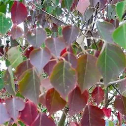 乌桕 Small)大戟科乌桕属木本植物。树皮为暗灰色,有竖向的裂纹;枝条展开很广,有皮孔;叶片互生,…