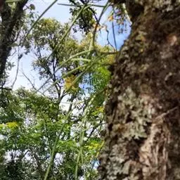 白千层 乔木,高18米;树皮灰白色,厚而松软,呈薄层状剥落;嫩枝灰白色。