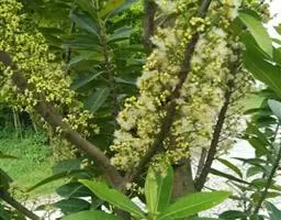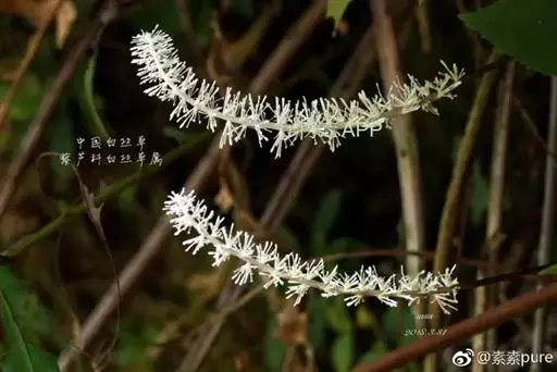 花白色,密集于枝顶成穗状花序,长达15厘米,花序轴常有短毛;萼管卵形,长3毫米,有毛或无毛,萼齿5,圆形,长约1毫米;花瓣5,卵形,长2-3毫米,宽3毫米;雄蕊约长1厘米,常5-8枚成束;花柱线形,比雄蕊略长。
