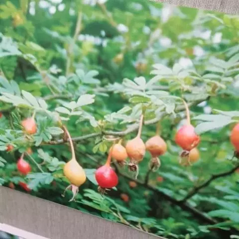 刺蔷薇:灌木,高1-3米;小枝圆柱形,稍微弯曲,红褐色或紫褐色,无毛,有细直皮刺。小叶片宽椭圆形或…