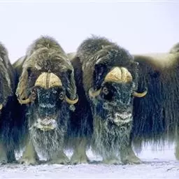 麝牛,是偶蹄目牛科麝牛属哺乳动物。麝牛体型大,但低矮粗壮,头大,吻部宽,眼小;雌雄均具角,四肢短粗,…
