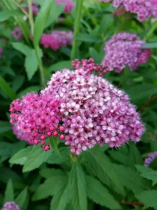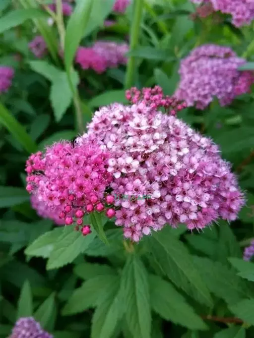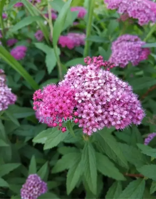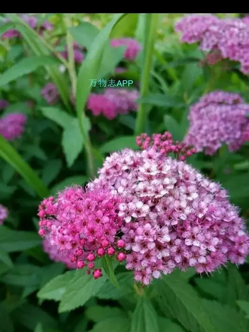 粉花绣线菊(学名:Spiraea japonica L. f.),别名蚂蟥梢、火烧尖、日本绣线菊,蔷薇科、绣线菊属直立灌木,高可达1.5米;枝条开展细长,圆柱形,冬芽卵形,叶片卵形至卵状椭圆形,上面暗绿色,下面色浅或有白霜,通常沿叶脉有短柔毛;复伞房花序,花朵密集,密被短柔毛;苞片披针形至线状披针形,萼筒钟状,萼片三角形,花瓣卵形至圆形,粉红色;花盘圆环形,蓇葖果半开张,花柱顶生,6-7月开花,8-9月结果。有时有2次开花。