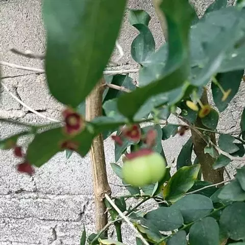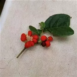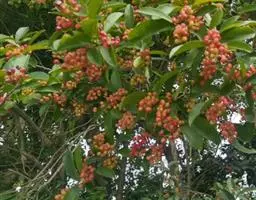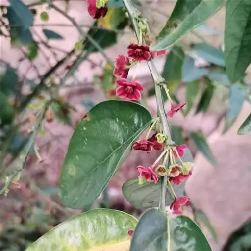 雄花:1-2朵腋生,或几朵与雌花簇生于叶腋,直径2-10毫米;花梗纤细,长5-7.5毫米;花盘浅盘状,直径5-12毫米,6浅裂,裂片倒卵形,覆瓦状排列,无退化雌蕊;雄花3,花丝合生呈短柱状,花药外向,2室,纵裂;花盘腺体6,与萼片对生,上部向内弯而将花药包围;雌花:通常单生于叶腋;花梗长6-8毫米;花萼6深裂,裂片红色,倒卵形或倒卵状三角形,长5-6毫米,宽3-5.5毫米,顶端钝或圆,基部渐狭而成短爪,覆瓦状排列;无花盘;雌蕊扁球状,直径约1.5毫米,高约0.7毫米,子房3室,每室2颗胚珠,花柱3,顶端2裂。蒴果扁球状或圆球状,直径约1.7厘米,高1.2厘米,乳白色,宿存花萼红色;果梗长5-10毫米;种子三棱状,长约7毫米,宽约5毫米,黑色。花期4-7月,果期7-12月。