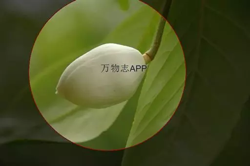花与叶同时开放,白色,芳香,杯状,盛开时碟状,直径7-10厘米;花梗长3-7厘米,密被褐色及灰白色平伏长柔毛,着生平展或稍垂的花朵;花被片9,近等大,外轮3片长圆状倒卵形或倒卵形,长4-6厘米,宽2.5-3.5厘米,基部被白色毛,顶端宽圆或圆,内两轮6片,较狭小,基部渐狭成短爪;雄蕊紫红色,长9-11毫米,花药长约6毫米,两药室邻接,内向纵裂,顶端微凹或药隔平,不伸出,花丝长3-4毫米;雌蕊群椭圆形,绿色,长约1.5厘米。聚合果熟时红色,倒卵圆形或长圆体形,长2-7厘米;蓇葖狭椭圆体形,长约1厘米,沿背缝线二瓣全裂。顶端具长约2毫米的喙;种子心形,外种皮红色,内种皮褐色,长与宽6-7毫米,顶孔细小末端具尖。