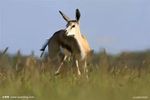 草丛中当所有跳羚的注意力都集中在角斗上时,狮子便有了难得的机会。狮子通常更喜欢吃长角羚一类较大的动物。但此时,使它动心的是角斗的双方。一只警觉的跳羚发出了警报。狮子明白,订餐被取消了。整个跳羚群腾跃起来。跳羚有一种与众不同的腾跳方式,似乎表明要抓住它们是何等不易。