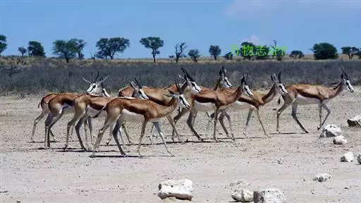 这里是世界上最大的连续性沙漠地带——非洲南部的卡拉哈里沙漠。从前,无数跳羚曾经聚集在卡拉哈里,并进行过多次传奇式的集体迁移。上个世纪,有人曾目睹过跳羚迁移的盛况。然而现在,大约十分之一的跳羚都过起了离群索居的生活,为什么呢?