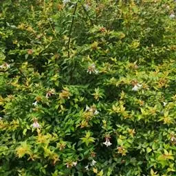 大花六道木,忍冬科六道木属半常绿矮生灌木。其幼枝为红褐色,有短柔毛;叶片倒卵形为墨绿色,…