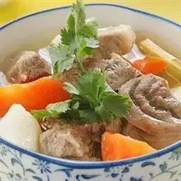 特色传统名菜,属川菜系。主料瘦黄牛肉。辅料豆芽、鸭血、肉汤、莴笋或者其他蔬菜、粉丝。调料葱、精盐、…