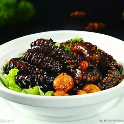 3、蒜末、葱段下锅煸炒,倒入卤汁,再放入荔枝肉、荸荠片翻炒,装盘即成。